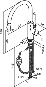 Köksblandare med diskmaskinsavstängning och utdragbar dusch krom