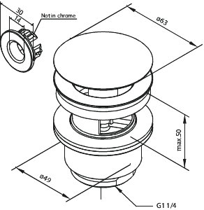 Pop-up bottenventil krom