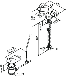 Tvättställsblandare med lyftventil krom